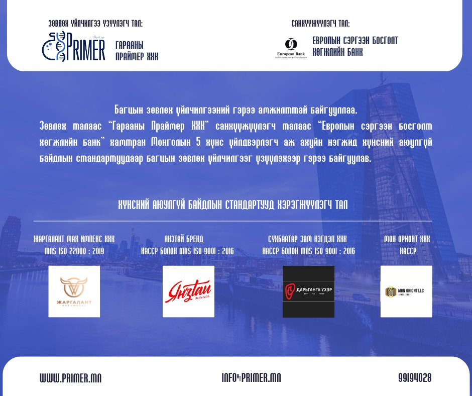 With the support of the European Bank for Reconstruction and Development, Startup Primer LLC and the European Bank for Reconstruction and Development have successfully concluded an agreement on cooperation in the introduction and implementation of “food safety standards at enterprises”.