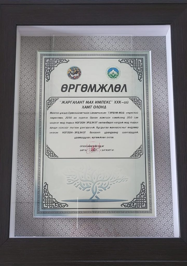 #ногоон_эрдэнэт Орхон аймгийн хэмжээнд тус шалгаруулалтад ТЭРГҮҮН байранд шалгарч батламж, мөнгөн шагнал авлаа.